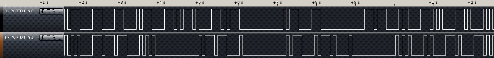 AVRTelegraph Sie heißt AVRTelegraph und kann einen oder mehrere Telegrafen simulieren. Bis zu 8 Nachrichten lassen sich parallel auf verschiedenen Ausgängen verschicken. Genau dies ist was die Sache etwas komplexer macht. Eine einzige Nachricht senden ginge nach dem Schema “Ausgang anmachen, Zeit warten, Ausgang ausmachen…”. Wenn man das mit mehreren Nachrichten parallel machen will hat man das Problem, dass Symbol-Startzeiten nicht unbedingt aufeinander treffen. Daher braucht man ein Zeit-Quantum, zu dem man alle Ausgänge überprüft und ggf. verändert oder auch nicht. Das Ganze lässt sich aber auch in etwas mehr als 200 Zeilen Code umsetzen. Die Bibliothek ist sicher nicht auf Performance optimiert, dafür aber recht übersichtlich gehalten und gut zu lesen.