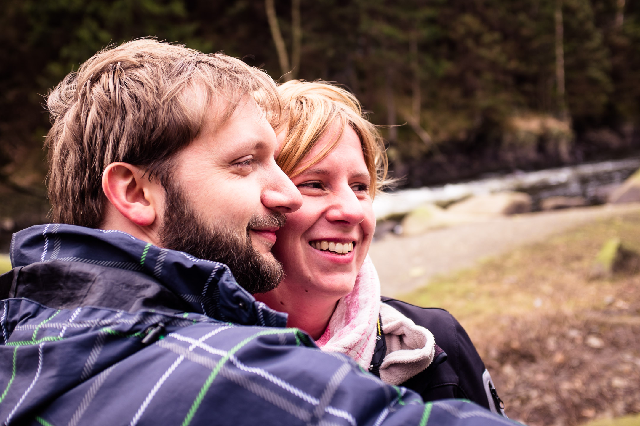 Der Überweg führte zu fünf Paar eingefrorener Füße und einer klitschnassen Hose, für die im nahe gelegenen real-Markt für Ersatz gesorgt werden musste, um die Tour fortsetzen zu können. Anschließend parkten wir dann an einer anderen Stelle, überquerten den Fluss über eine Brücke (langweilig!) und gingen den Wanderweg entlang. Dieser fing ziemlich gemächlich an, hatte dann aber auch noch ein paar schöne Anstiege. Zwischendurch gab es eine kleine Wasserkraftanlage, zwei Kletterhügel und eine kleine Talsperre zu sehen. Wer diesen wunderschönen Weg mal entlang gehen will startet am besten hier.