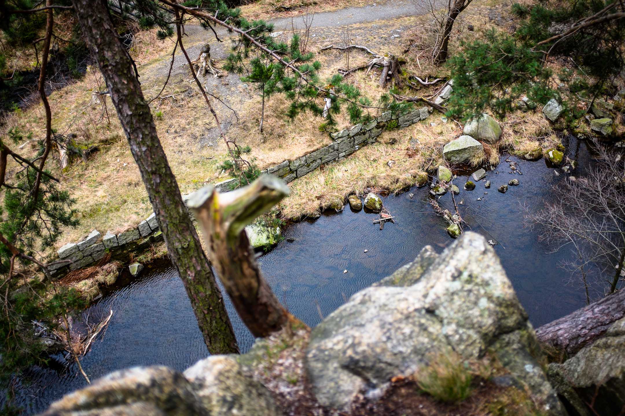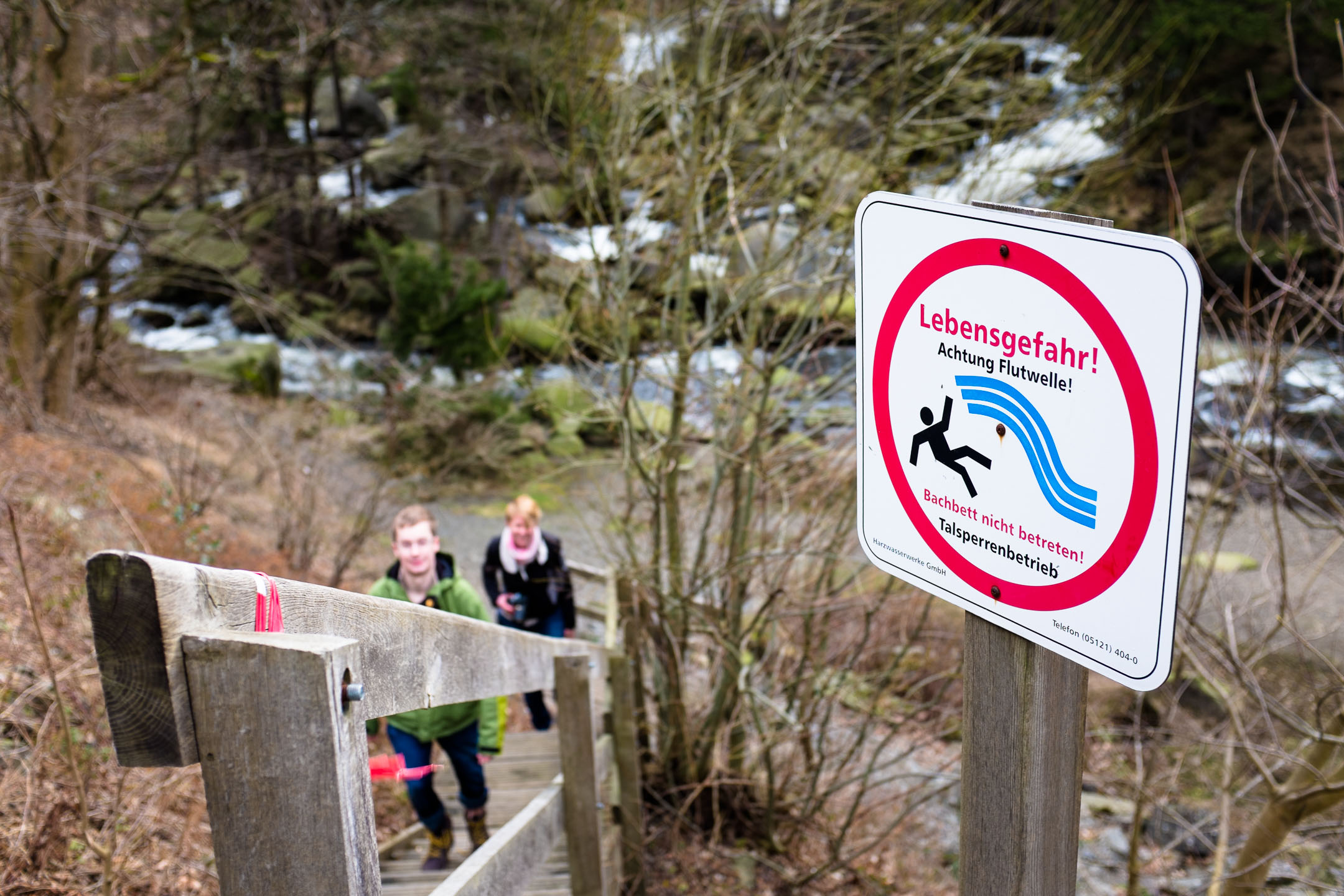 Da sag noch mal einer, Wandern im Harz wäre langweilig. Damit, dass Wasser in den Bergen eine Gefahr werden könnte, hätte ich auch nicht gerechnet. Aber von Anfang an: Gestern machten wir einen kurzen Ausflug in den Harz und wollten eigentlich zur Okertalsperre fahren. Auf dem Weg kamen wir mit dem Auto an einem schönen Flussbett vorbei, auf dessen gegenüberliegender Seite sich ein Wanderweg den Berghang entlang schlängelte. Nach kurzem Quengeln meinerseits hielten wir an einem Parkplatz an und gingen hinunter. Schnell ein paar Fotos im Flussbett machen und dann auf die andere Seite, den Wanderweg entlang gehen, war der Plan.