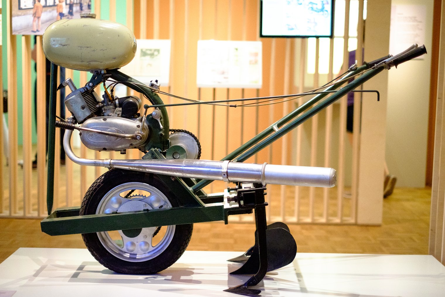 It was also shown how people got creative with the limited number of products available and built their own devices. This tilling machine looks so sporty with the enormous exhaust that it should go through your field in no time.