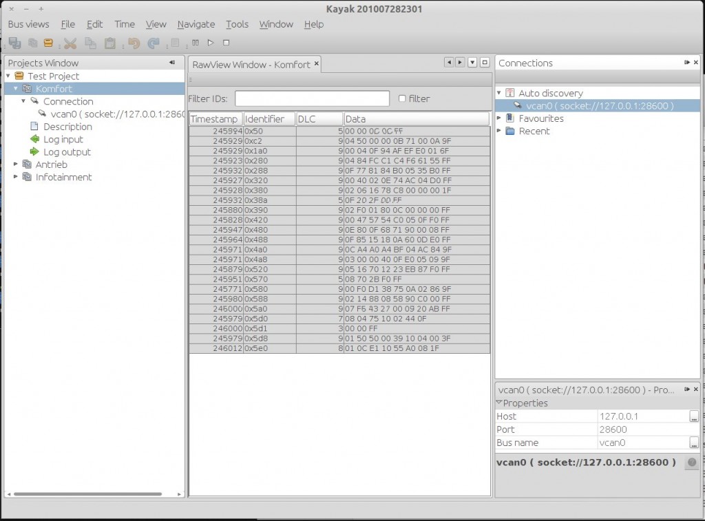 Kayak benötigt für Zugriff auf einen CAN-Bus auf der socketcand-Seite einen CAN-Socket. Das kann entweder ein RAW-Socket oder ein BCM-Socket sein, die sich grundlegend durch ihr Verhalten unterscheiden.
